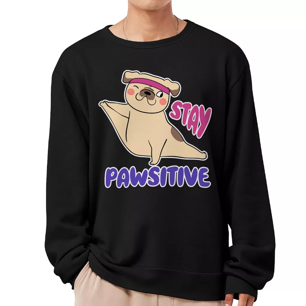 Stay Pawsitive Sweatshirt – Meditation Gift Crewneck Sweatshirt – Funny Yoga Unisex Sweatshirt