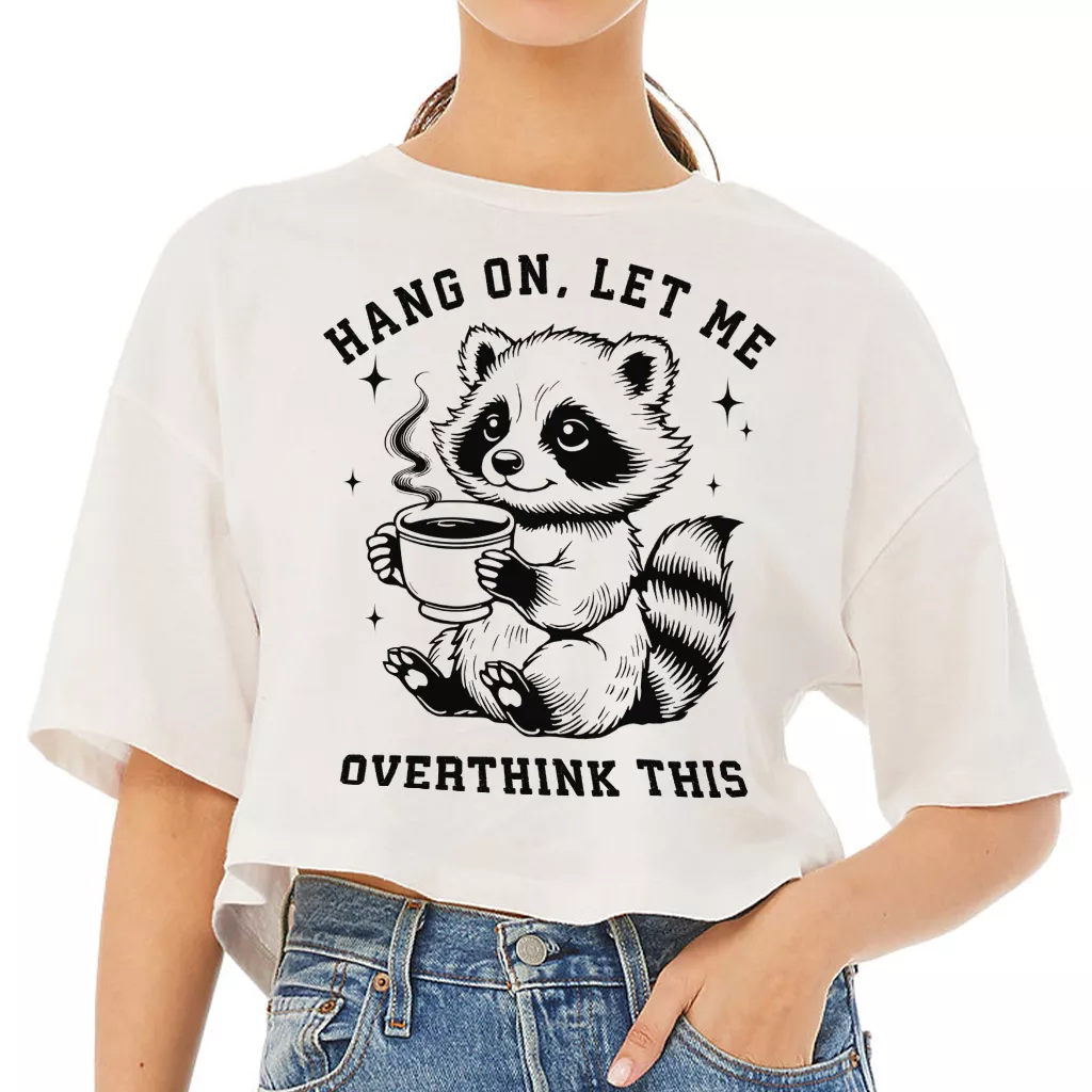 Hang On Let Me Overthink This Cropped T-Shirt – Funny Racoon Trendy Tee – Trash Panda Print Women’s Basic T-Shirt