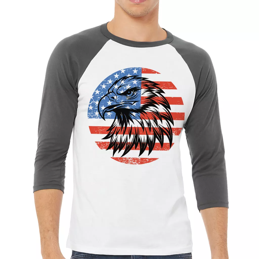 Patriotic Eagle Baseball T-Shirt – 4th of July 3/4 Sleeve – USA Raglan Jersey Shirt