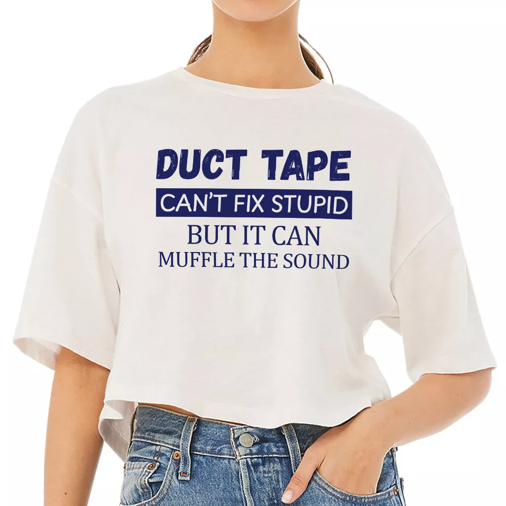Can’t Fix Stupid Cropped T-Shirt – Duct Tape Funny Trendy Tee – Sarcasm Women’s Basic T-Shirt