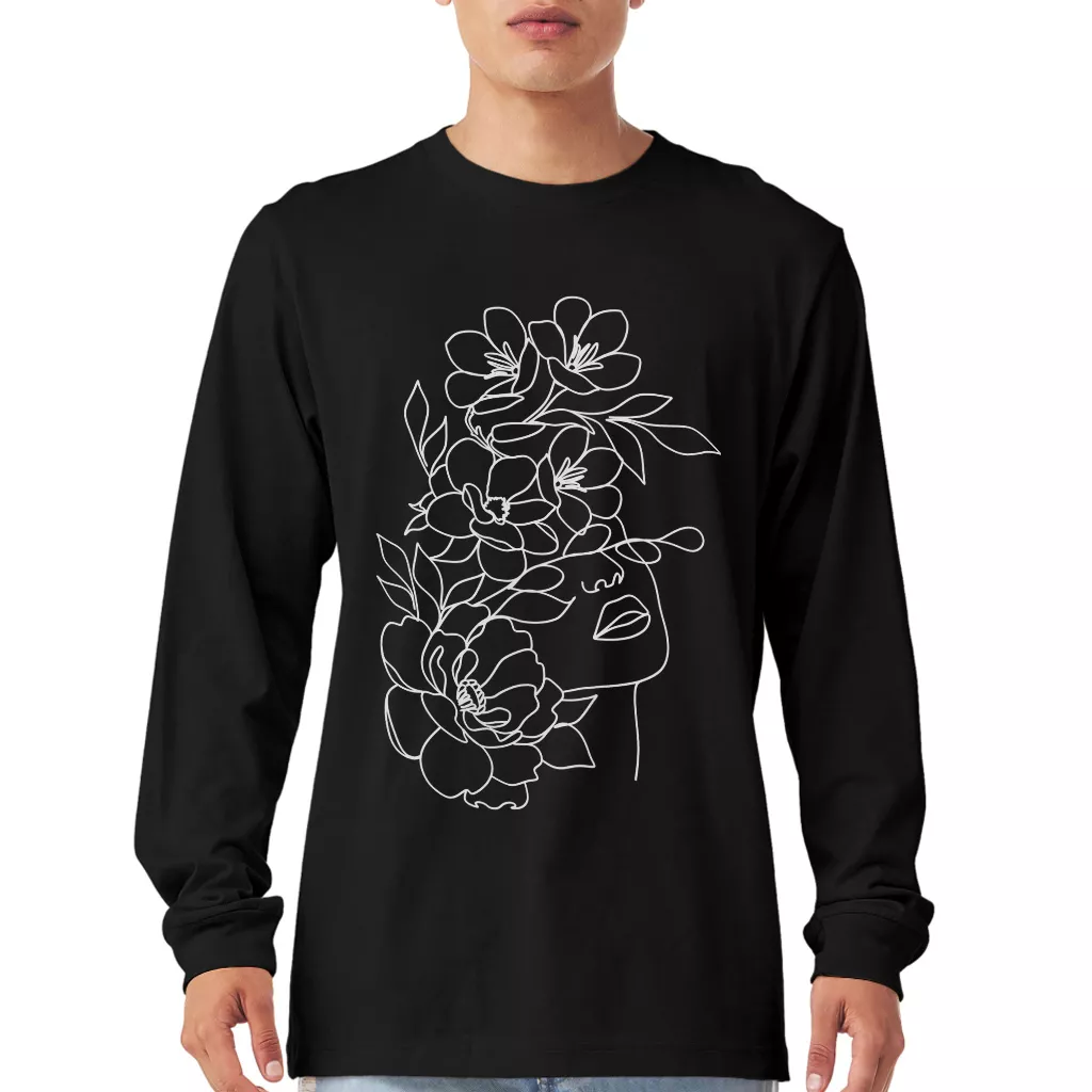 Floral line face Long Sleeve T-Shirt – Outline graphic T-Shirt – Flowers print Basic Tee