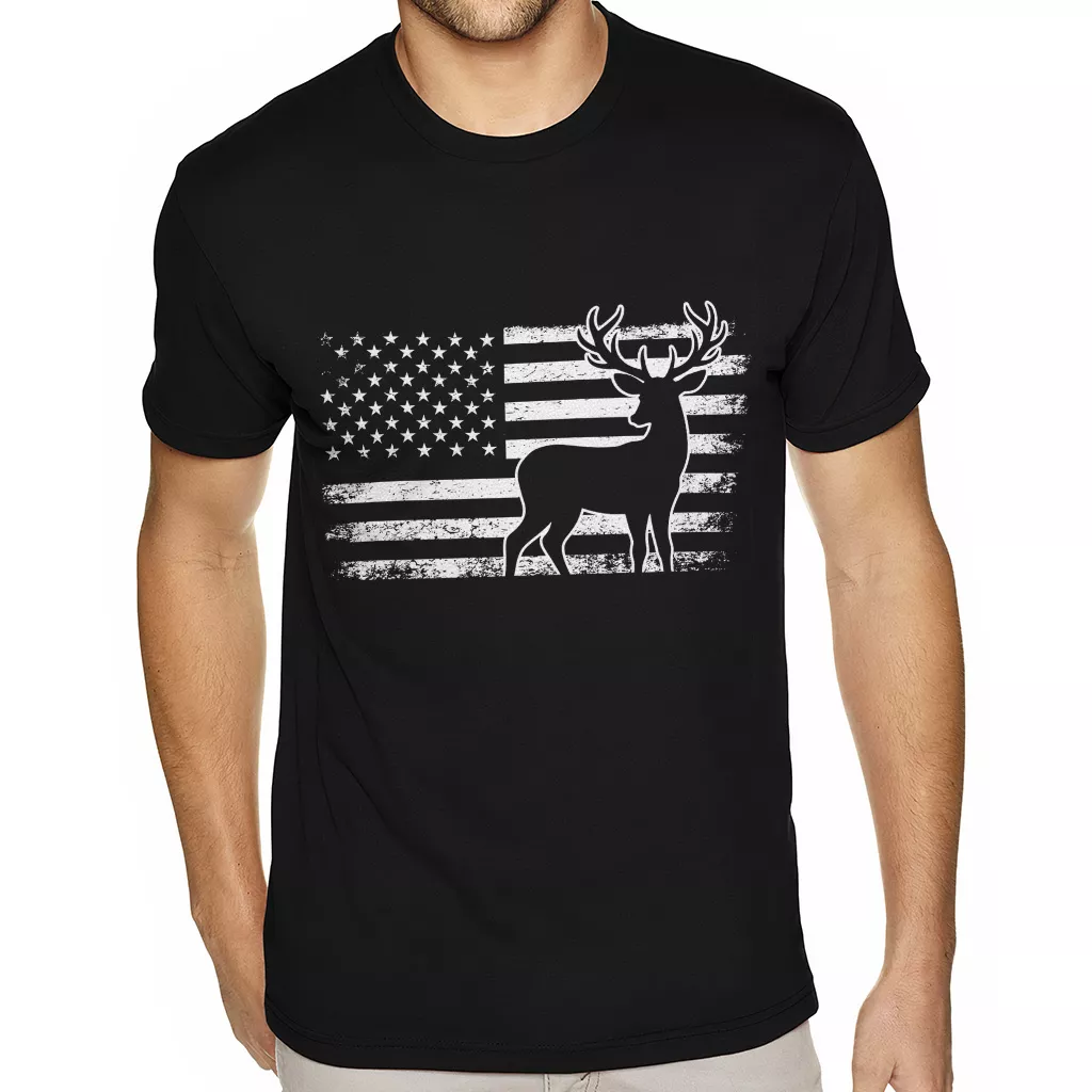 USA Flag Deer T-Shirt – American Heavy Cotton Tee – Patriotic Print Shirt
