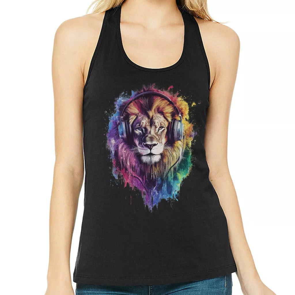 Cool Lion Racerback Tank – Lion Face Design Tank Top – Animal Print Tank