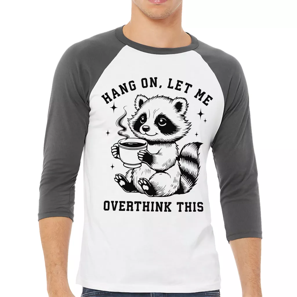 Hang On Let Me Overthink This Baseball T-Shirt – Trash Panda Print 3/4 Sleeve – Funny Racoon Raglan Jersey Shirt