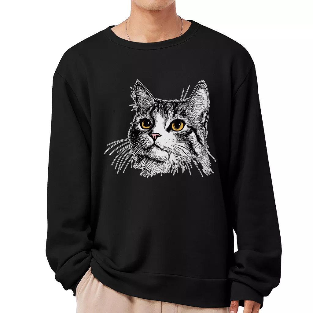 Cat Face Sweatshirt – Cat Print Crewneck Sweatshirt – Gift for Cat Lovers Unisex Sweatshirt