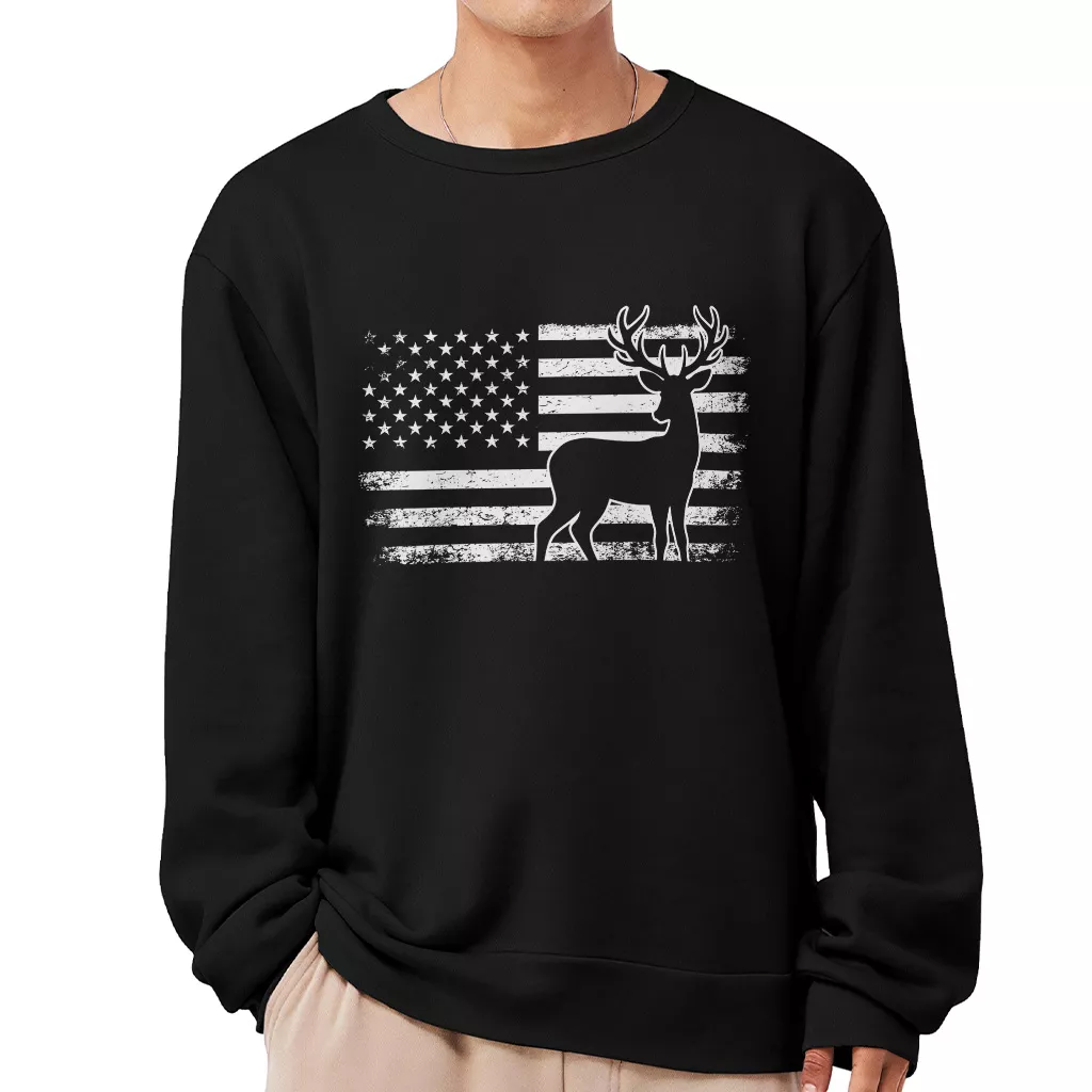 USA Flag Deer Sweatshirt – Patriotic Print Crewneck Sweatshirt – American Unisex Sweatshirt