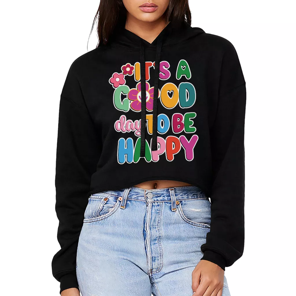 It’s a Good Day to Be Happy Women’s Cropped Hoodie – Boho Hippie Hooded Sweatshirt – Inspirational Super Crop Top Hoodies