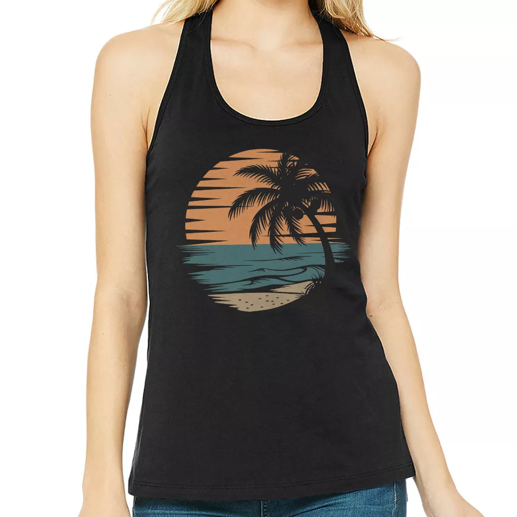Retro Tropical Sunset Racerback Tank – Trendy Aesthetic Tank Top – Summer Palm Tank