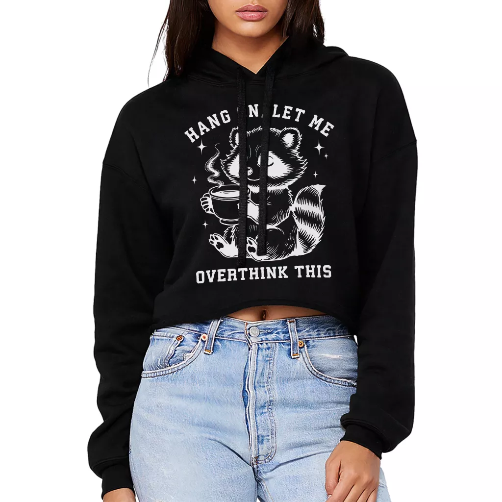 Hang On Let Me Overthink This Women’s Cropped Hoodie – Funny Racoon Hooded Sweatshirt – Trash Panda Print Super Crop Top Hoodies