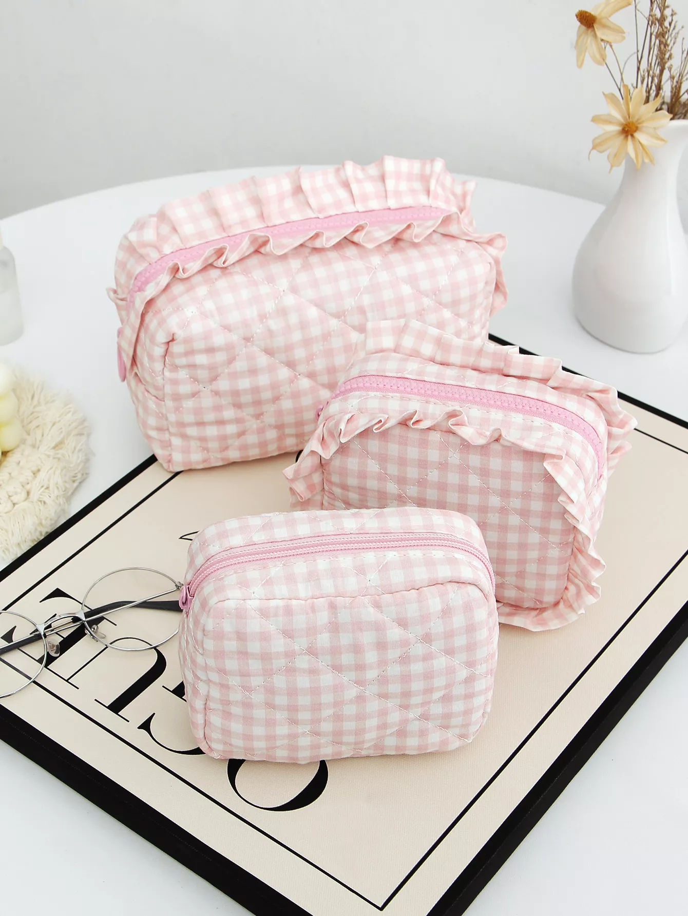 Upgrade your beauty routine with this adorable yet practical quilted plaid makeup bag. Designed with both style and function in mind, this bag is perfect for organizing your makeup, brushes, and toiletries whether you’re at home or on the go. The charming plaid design gives it a cozy, classic look, while the soft quilted exterior adds a layer of padded protection for your beauty essentials. Made from durable polyester, it’s lightweight yet tough enough to keep up with your daily adventures.