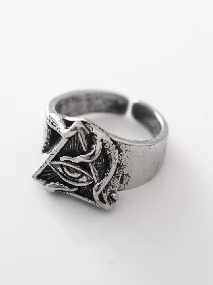 Retro Cthulhu Eye of Providence Adjustable Open Ring – Silver Punk Gothic Jewelry