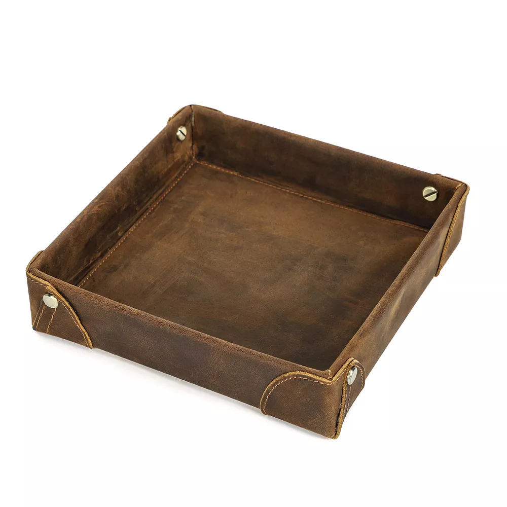 Retro Genuine Leather Desk Organizer – Key, Jewelry, Coins, and Cosmetic Storage Tray