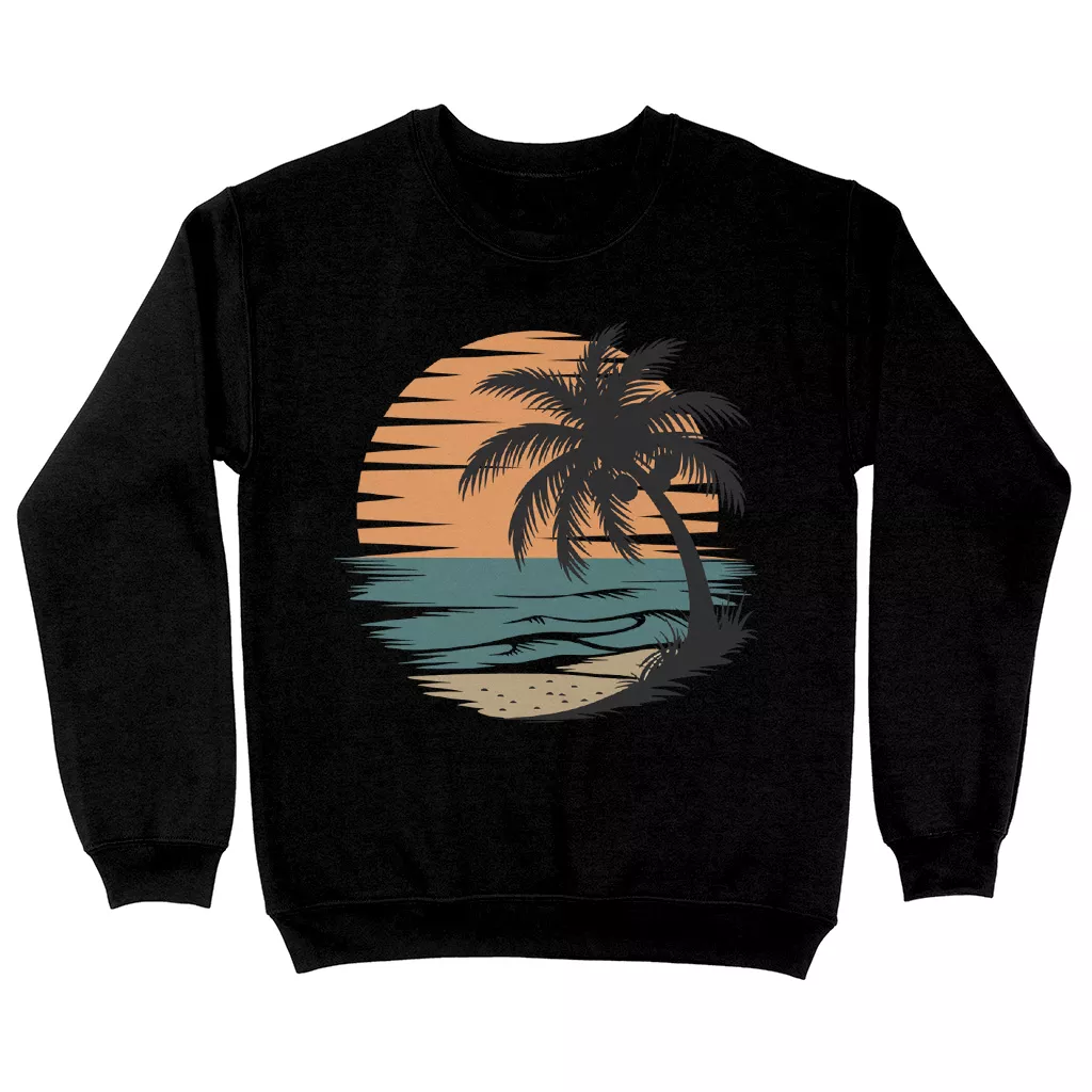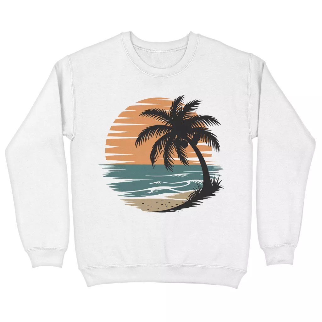 Retro Tropical Sunset Sweatshirt – Summer Palm Crewneck Sweatshirt – Trendy Aesthetic Unisex Sweatshirt