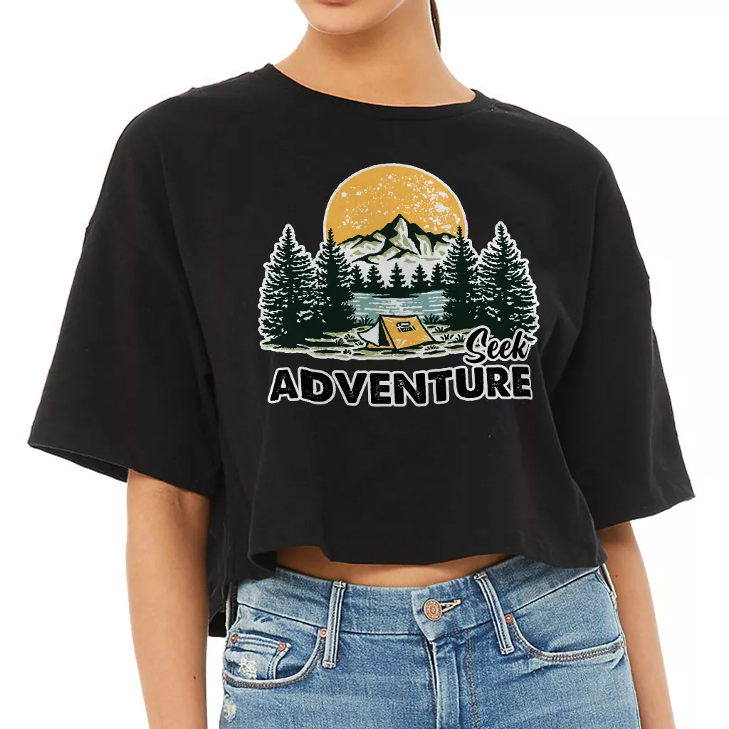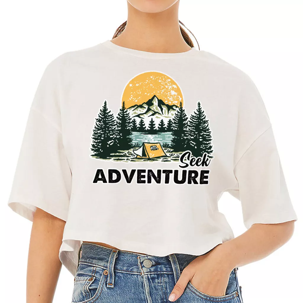 Seek Adventure Cropped T-Shirt – Wanderlust Trendy Tee – Camping Women’s Basic T-Shirt