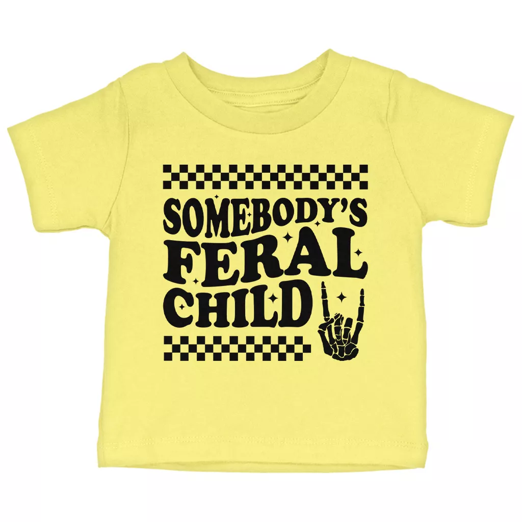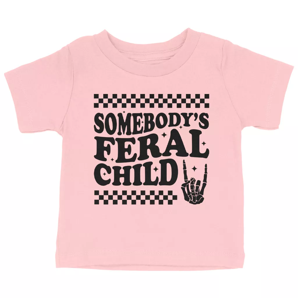Somebody’s Feral Child Baby T-Shirt – Funny Vintage T-Shirt for Kids – Wild Child Short Sleeve Tee
