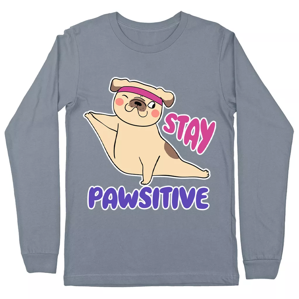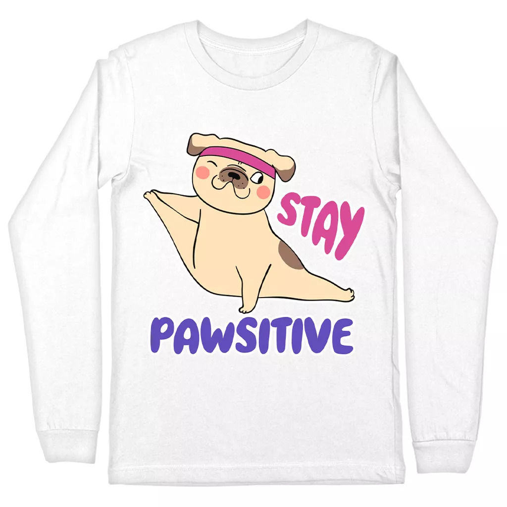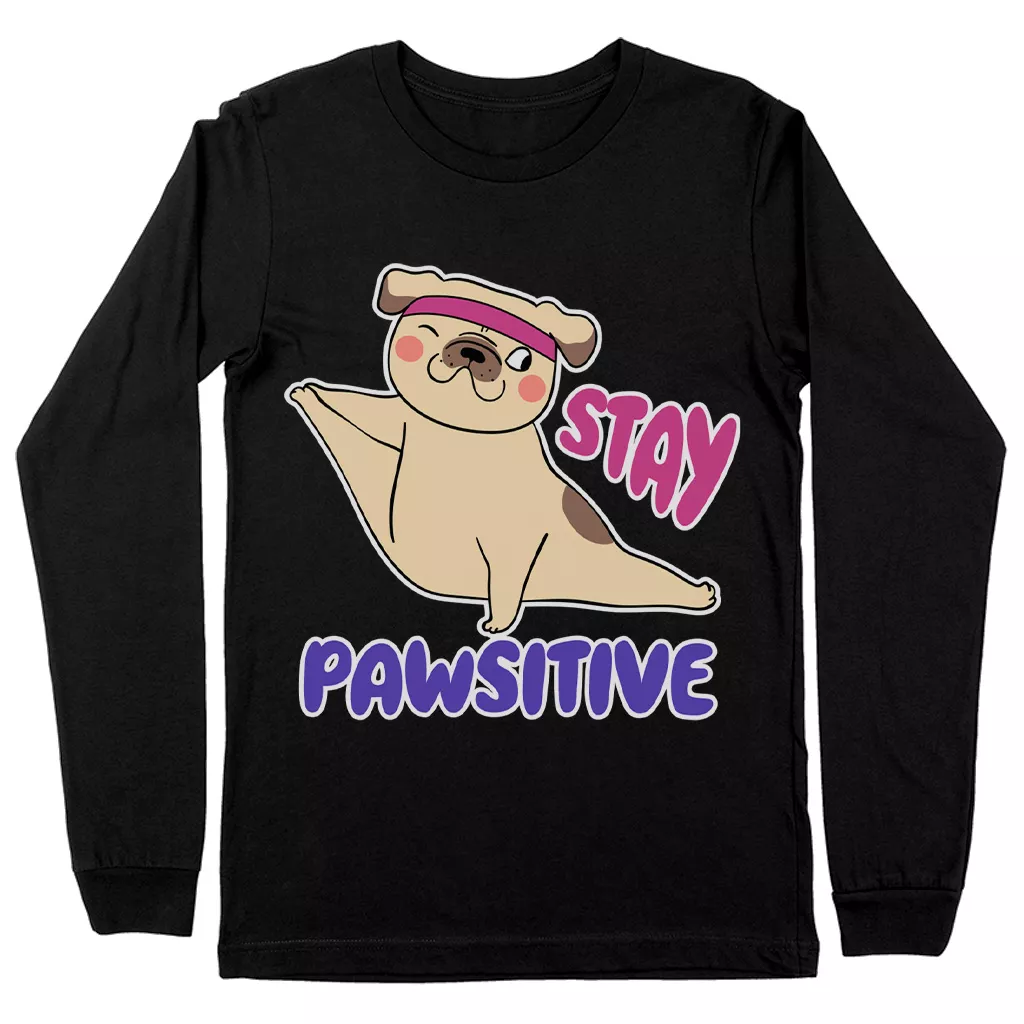 Stay Pawsitive Long Sleeve T-Shirt – Meditation Gift T-Shirt – Funny Yoga Basic Tee