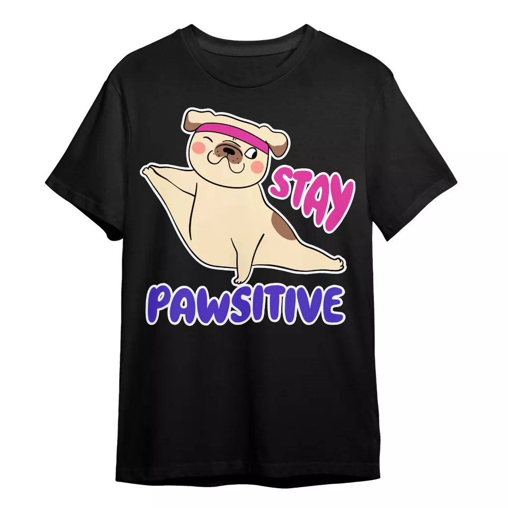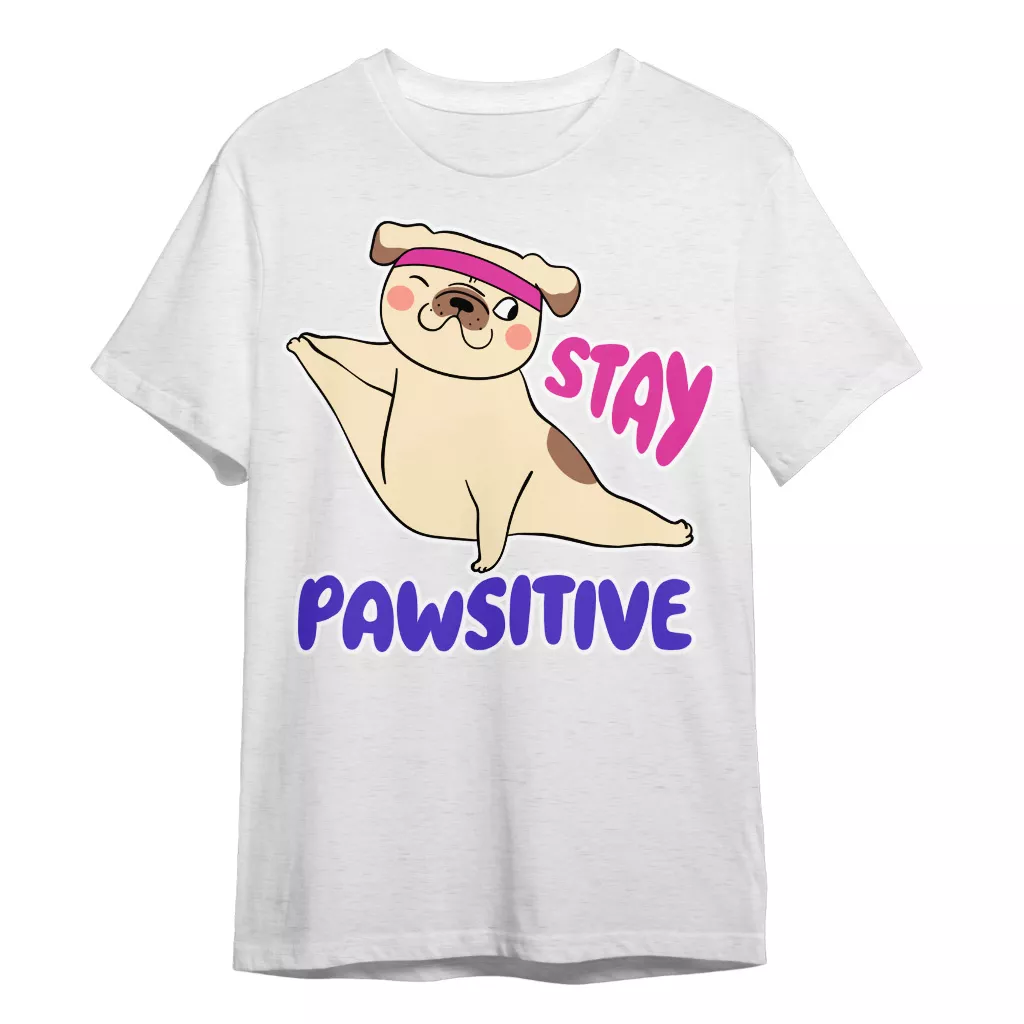 Stay Pawsitive T-Shirt is no ordinary piece of clothing. Its taped neck and shoulders, double-needle sleeve and bottom hems, and quarter-turned construction provide a retail fit for clothing that’s true to size. Meditation Gift Heavy Cotton Tee is Designed and printed in California.