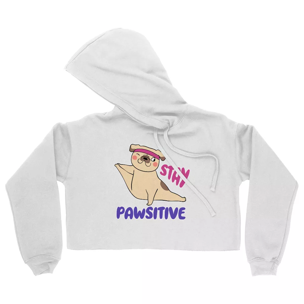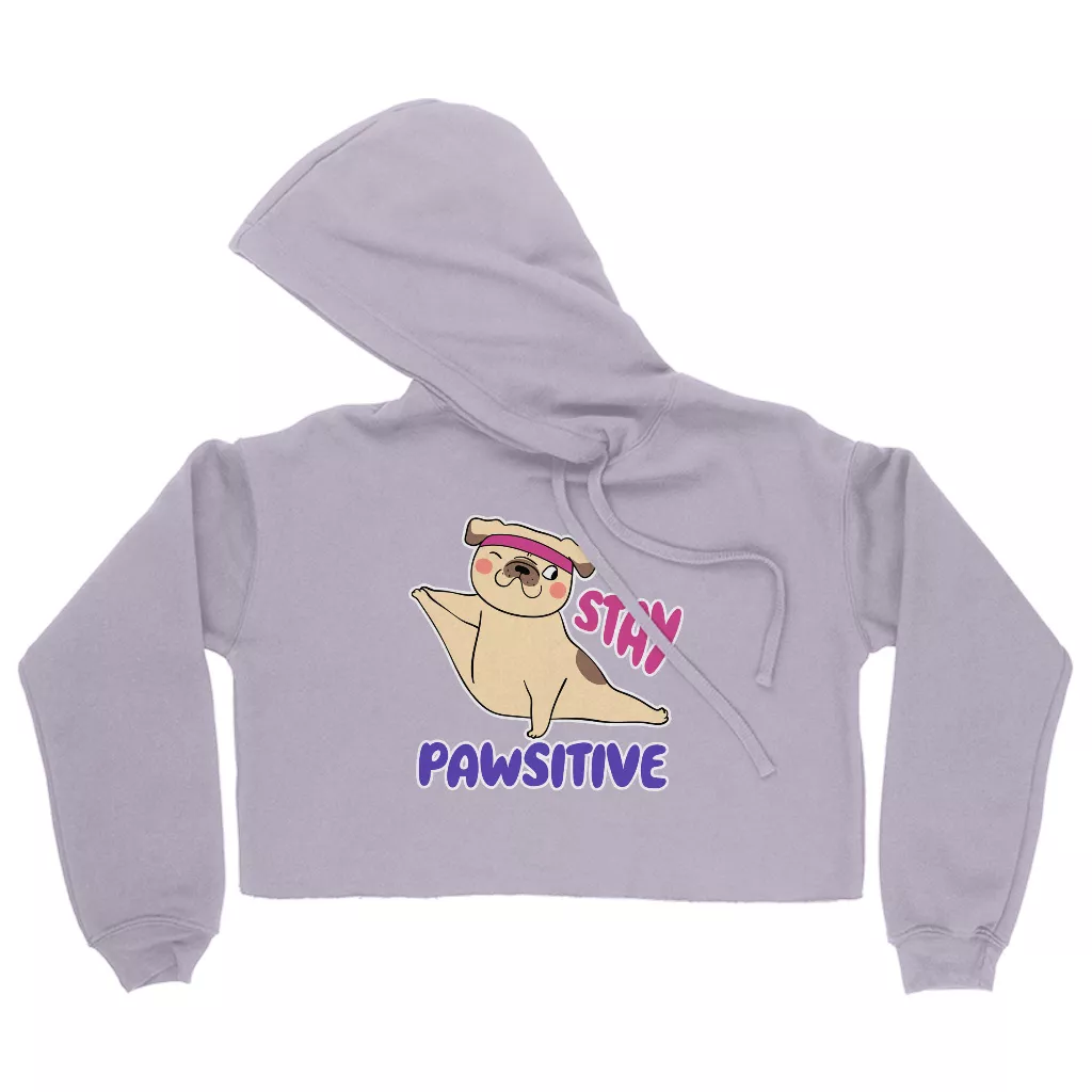 Stay Pawsitive Women’s Cropped Hoodie – Funny Yoga Hooded Sweatshirt – Meditation Gift Super Crop Top Hoodies