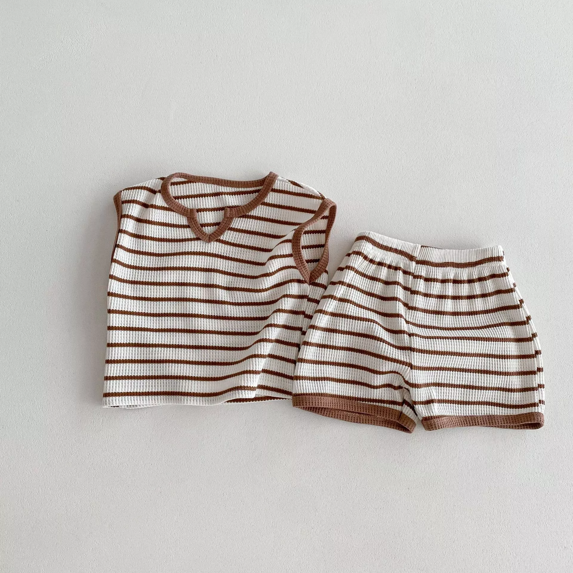 Striped Summer Kids Clothing Set – Boys and Girls Tee and Shorts Set