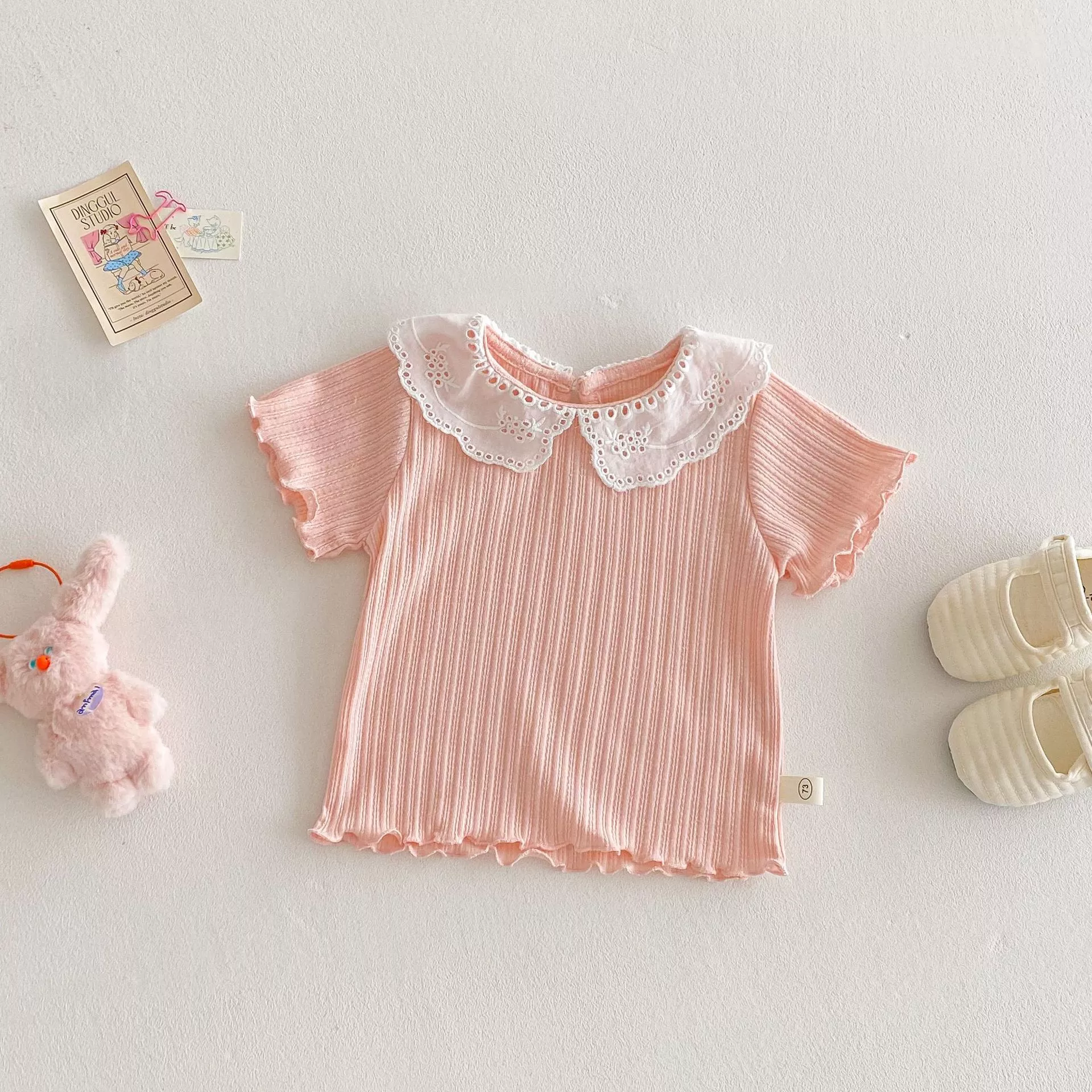 Introduce your little one to a world of charm and comfort with this adorable Summer Korean Style Girls T-Shirt. Designed with a sweet lace ruffled collar and cute ruffled edges on the sleeves and hem, this top perfectly captures a trendy Korean-style look. It’s an ideal choice for any occasion, from casual outings to family gatherings, providing your baby girl with the perfect balance of style and comfort.