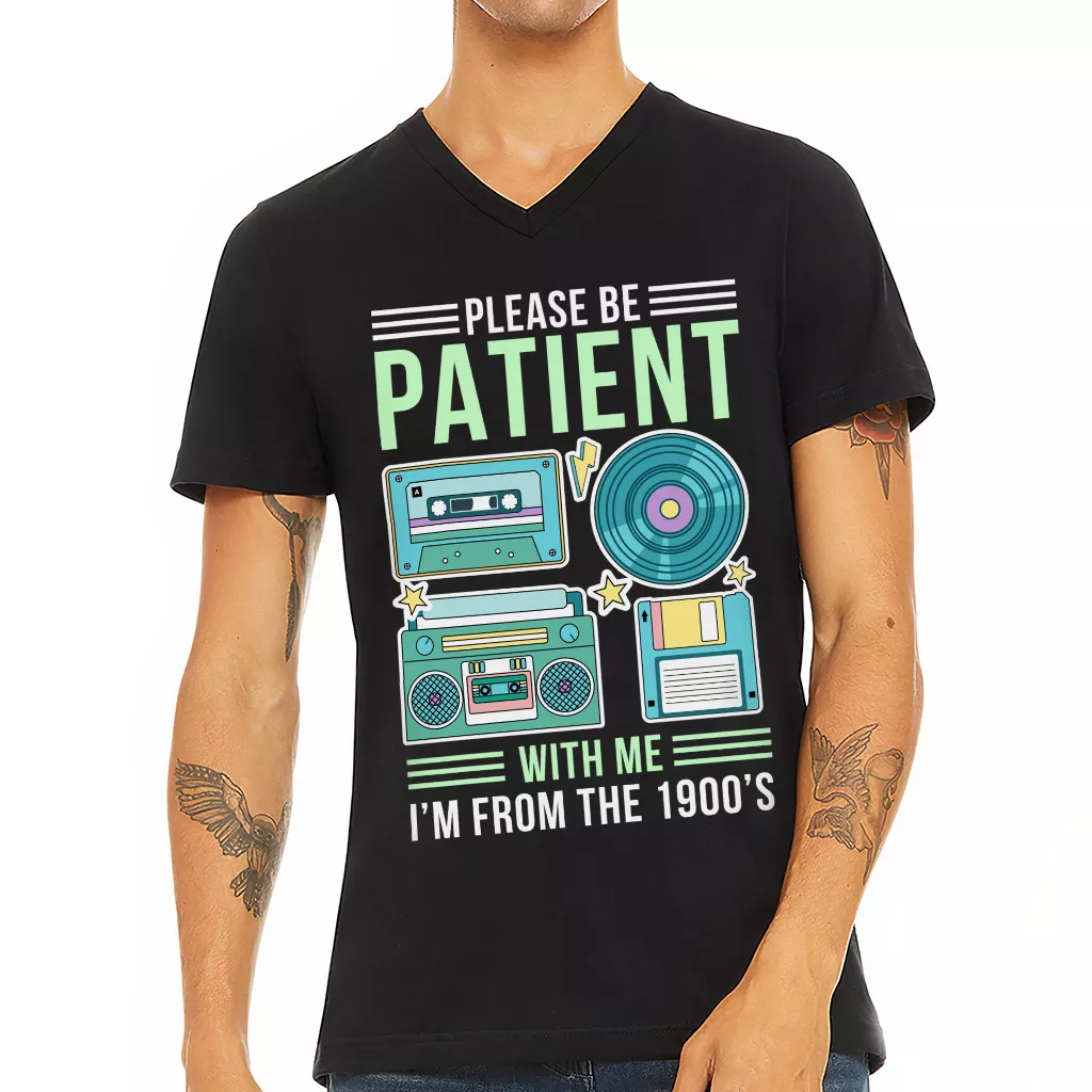 Please Be Patient With Me I’m From The 1900s V-Neck T-Shirt – 1900s Graphic Basic T-Shirt – Funny Retro Tee