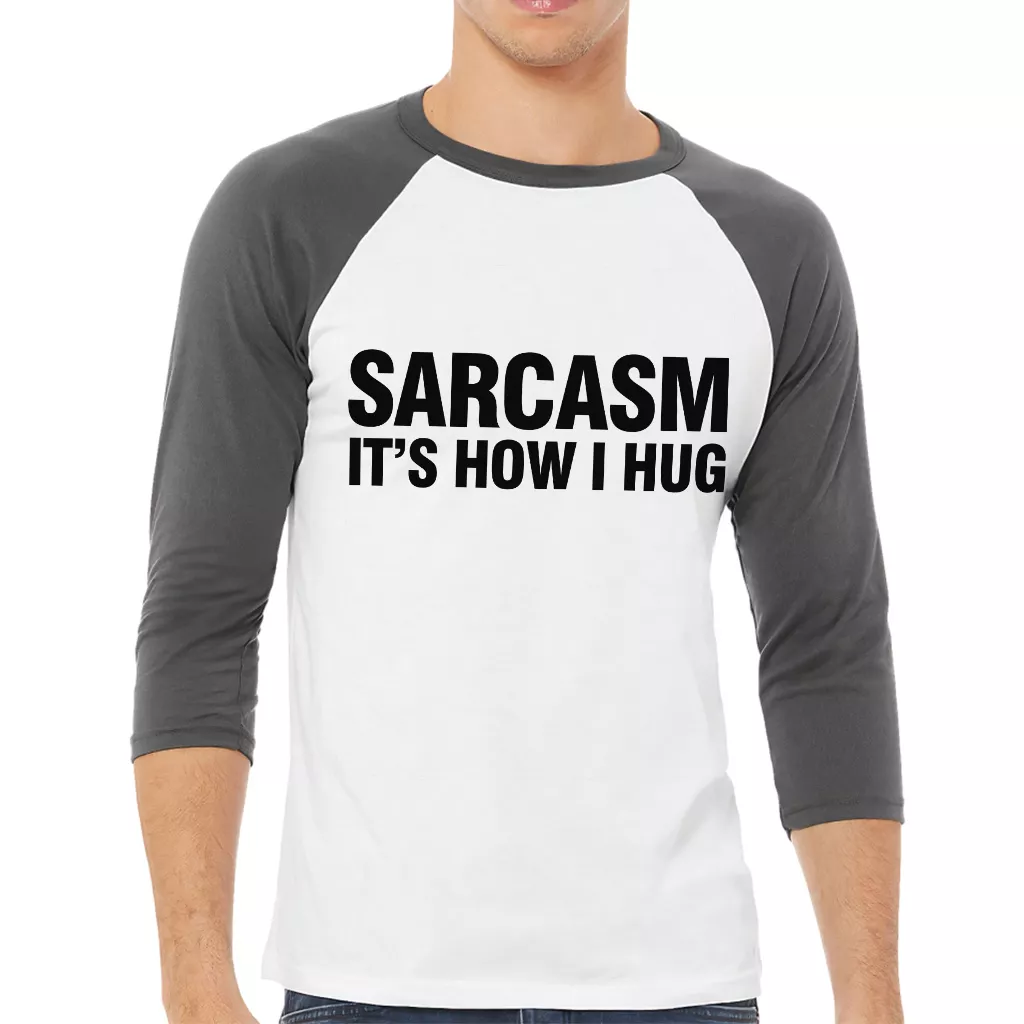 Sarcasm It’s How I Hug Baseball T-Shirt – Sarcastic Quote 3/4 Sleeve – Funny Raglan Jersey Shirt