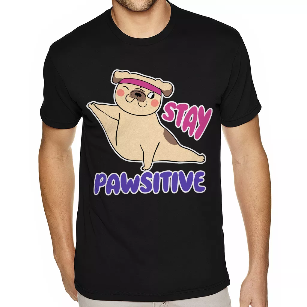 Stay Pawsitive T-Shirt – Meditation Gift Heavy Cotton Tee – Funny Yoga Shirt