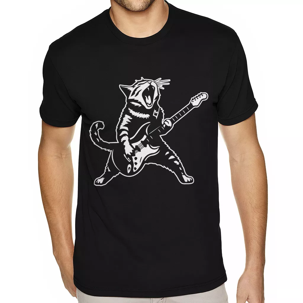Funny Guitar Cat T-Shirt – Cat Themed Gift Heavy Cotton Tee – Cool Cat Print Shirt