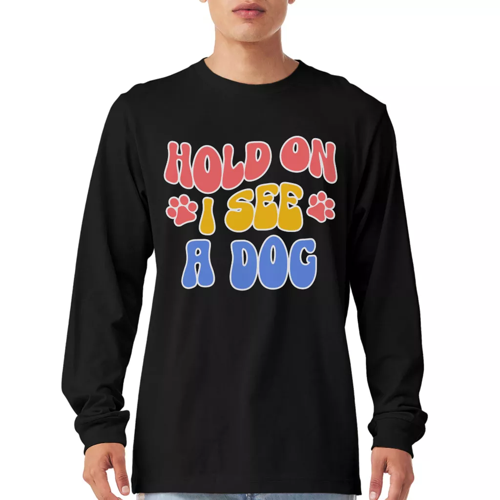 Hold On I See A Dog Long Sleeve T-Shirt – Gift For Dog Lover T-Shirt – Groovy Dog Basic Tee