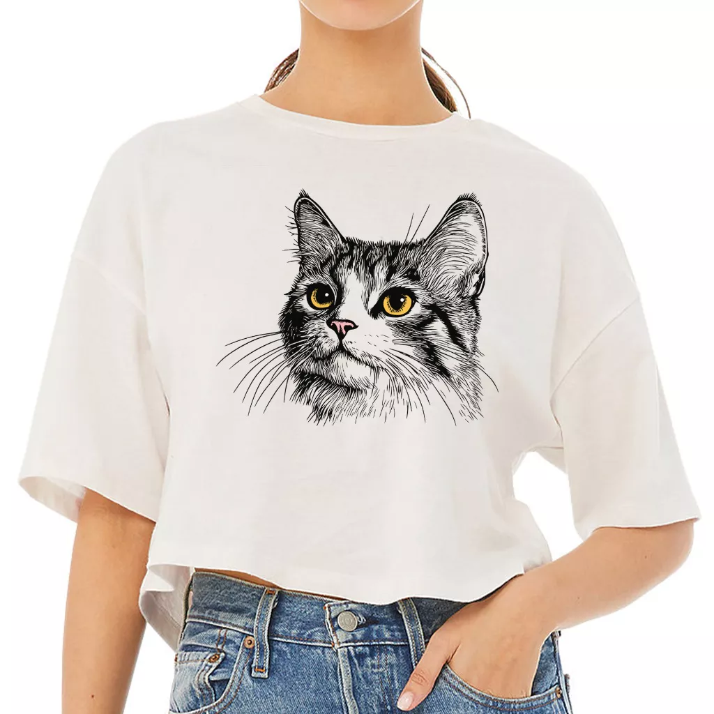 Cat Face Cropped T-Shirt – Cat Print Trendy Tee – Gift for Cat Lovers Women’s Basic T-Shirt