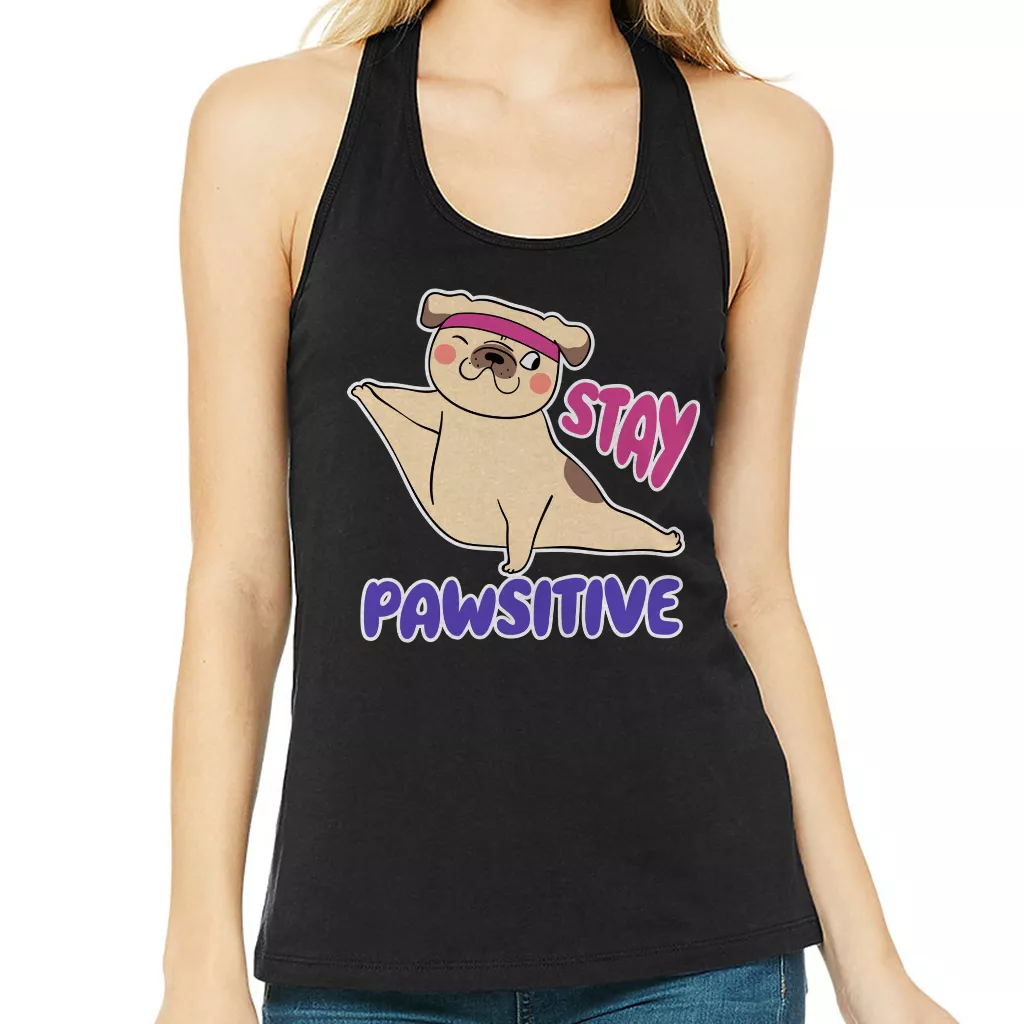Stay Pawsitive Racerback Tank – Meditation Gift Tank Top – Funny Yoga Tank