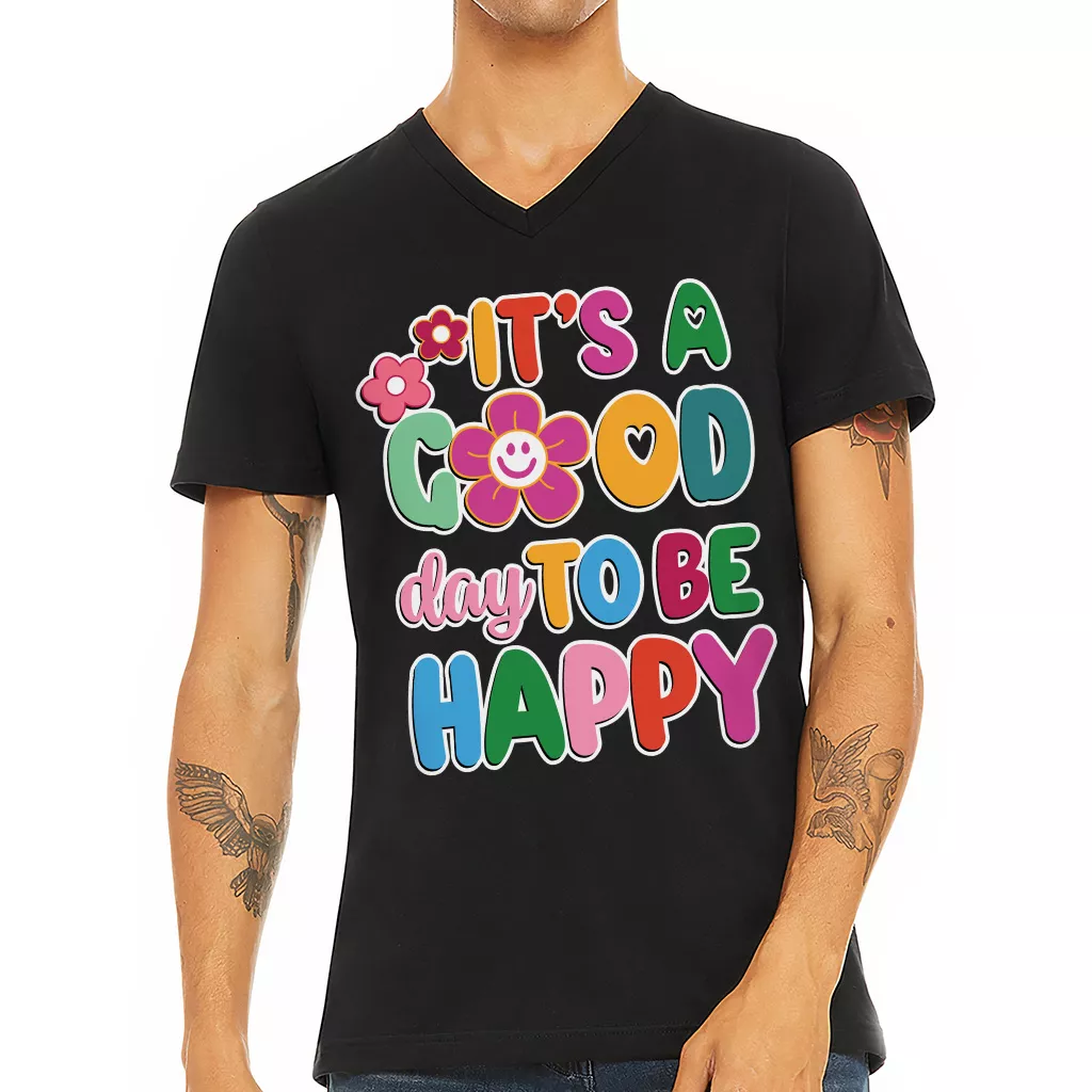 It’s a Good Day to Be Happy V-Neck T-Shirt – Inspirational Basic T-Shirt – Boho Hippie Tee