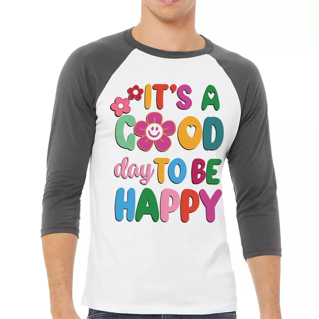 It’s a Good Day to Be Happy Baseball T-Shirt – Inspirational 3/4 Sleeve – Boho Hippie Raglan Jersey Shirt