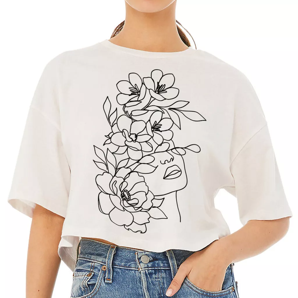 Floral line face Cropped T-Shirt – Outline graphic Trendy Tee – Flowers print Women’s Basic T-Shirt