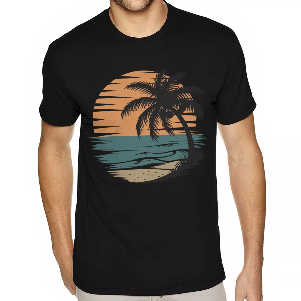Retro Tropical Sunset T-Shirt – Summer Palm Heavy Cotton Tee – Trendy Aesthetic Shirt