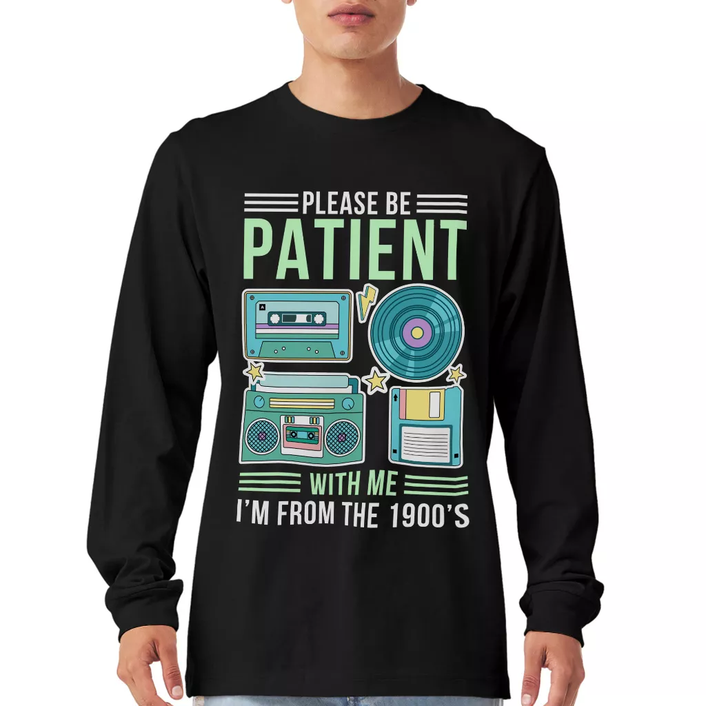 Please Be Patient With Me I’m From The 1900s Long Sleeve T-Shirt – Funny Retro T-Shirt – 1900s Graphic Basic Tee