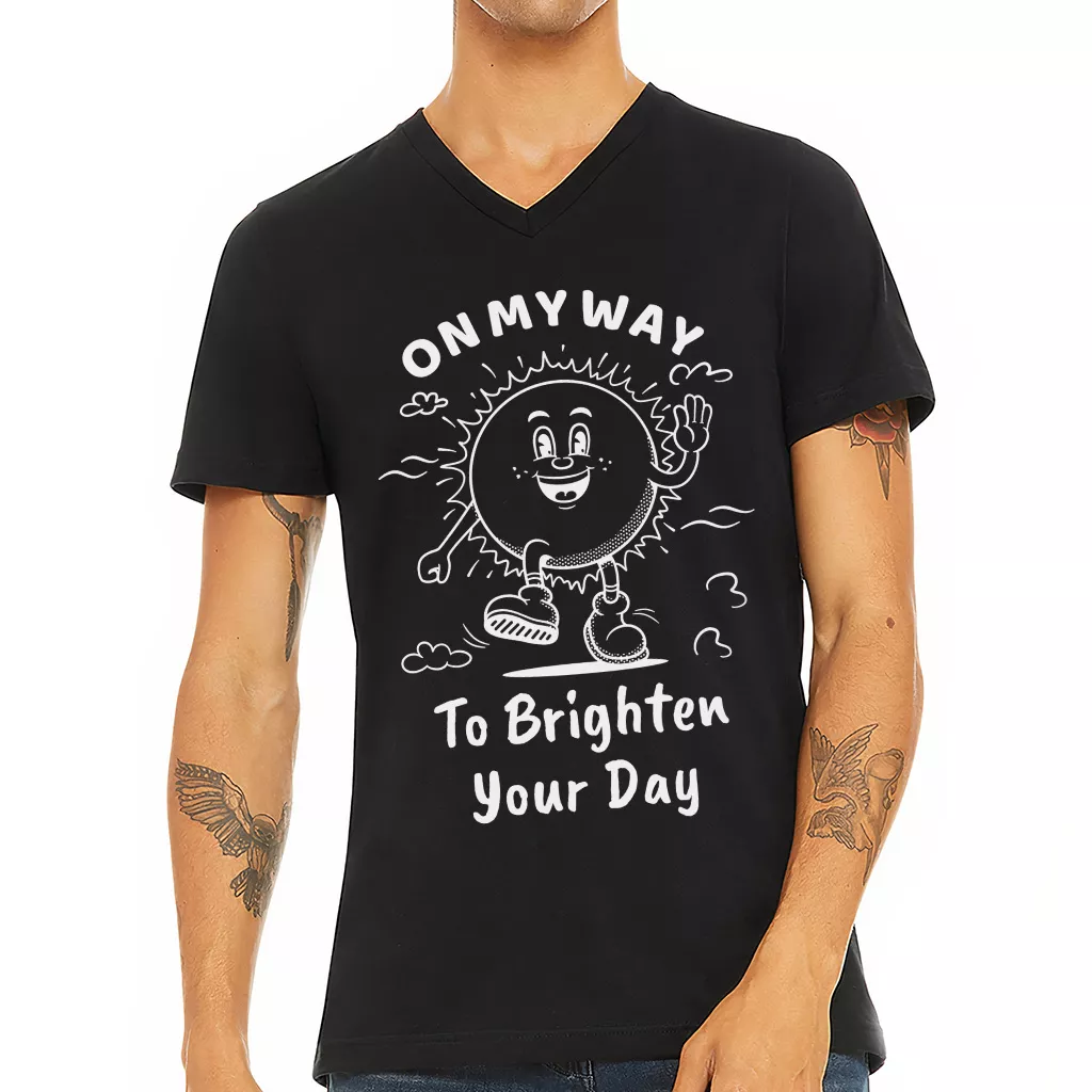 On My Way To Brighten Your Day V-Neck T-Shirt – Cool Vibe Basic T-Shirt – Vintage Sunshine Tee