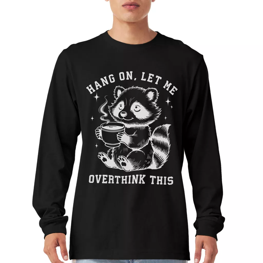 Hang On Let Me Overthink This Long Sleeve T-Shirt – Funny Racoon T-Shirt – Trash Panda Print Basic Tee