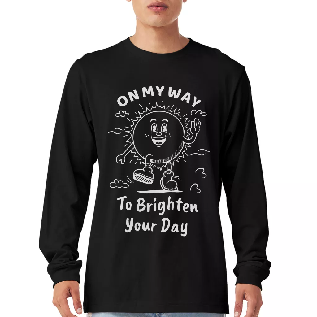On My Way To Brighten Your Day Long Sleeve T-Shirt – Vintage Sunshine T-Shirt – Cool Vibe Basic Tee