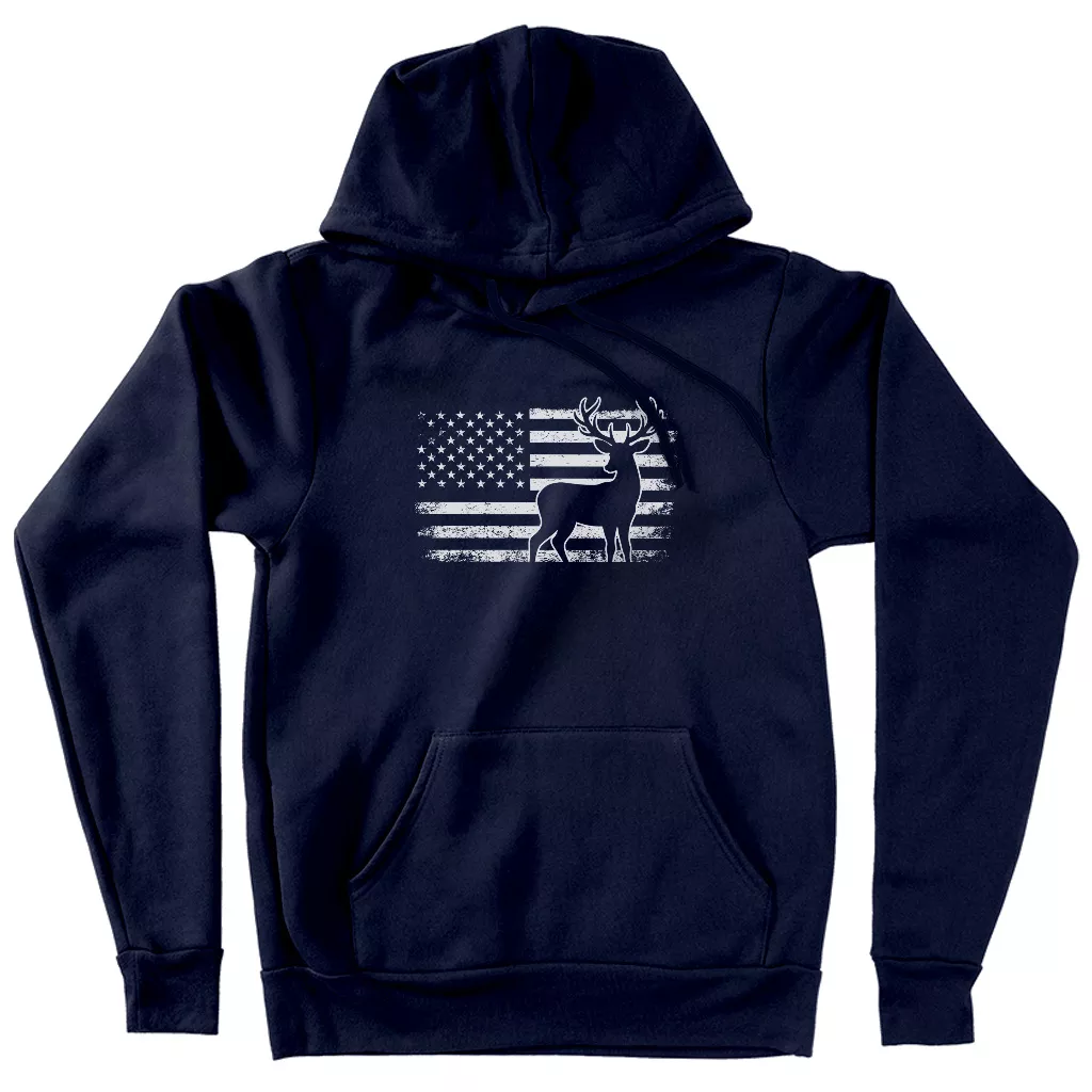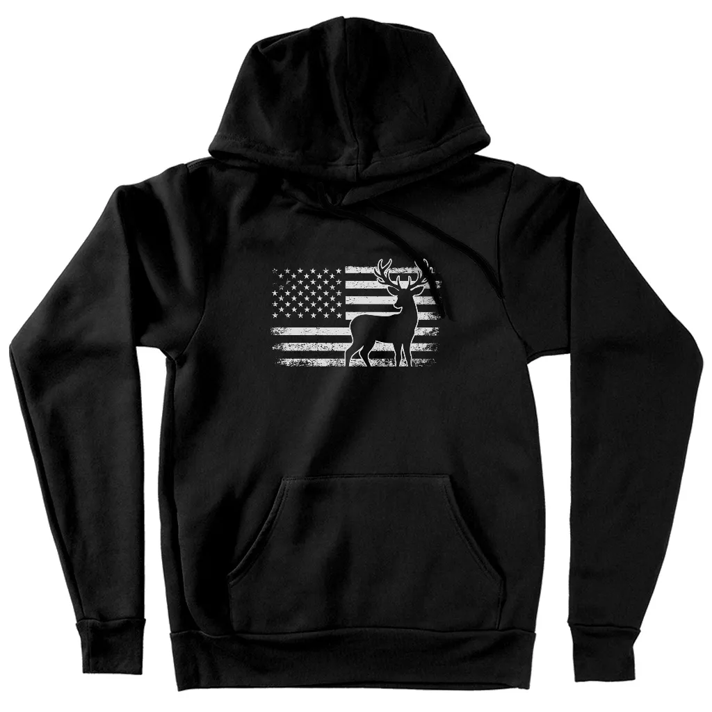 USA Flag Deer Hoodie – American Hooded Sweatshirt – Patriotic Print Unisex Hoodie