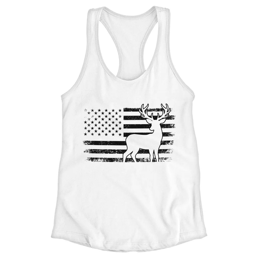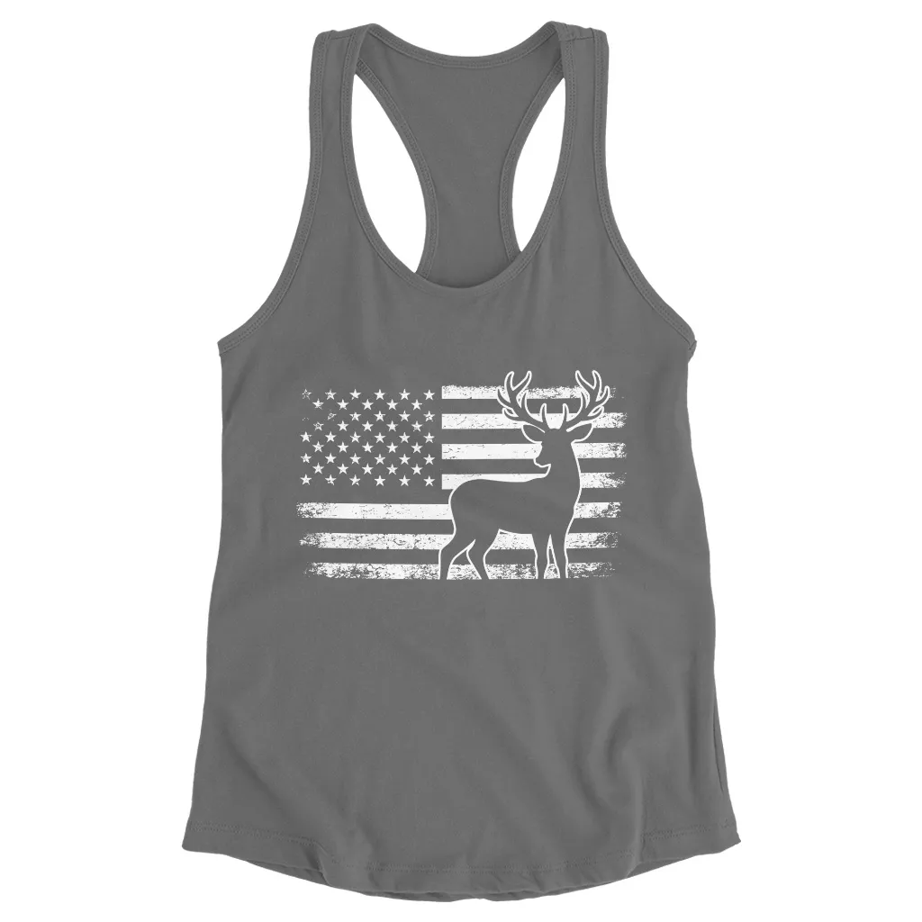 USA Flag Deer Racerback Tank – Patriotic Print Tank Top – American Tank