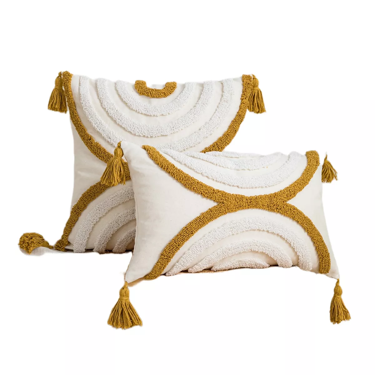 Yellow Geometric Arc Pillow Cover – Boho Cotton Look for Home Décor